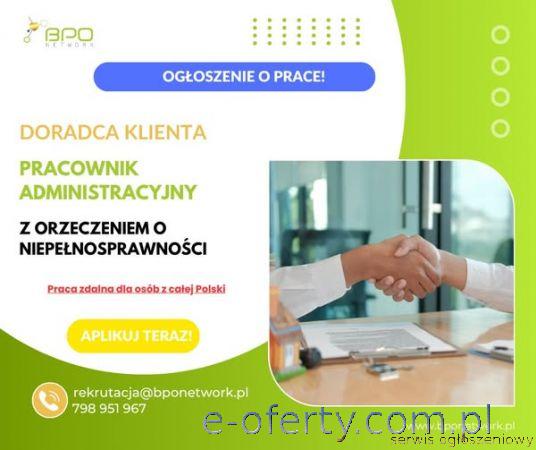 Doradca klienta - pracownik administracyjny z orzeczeniem o niepełnosprawności (3/4 etatu)