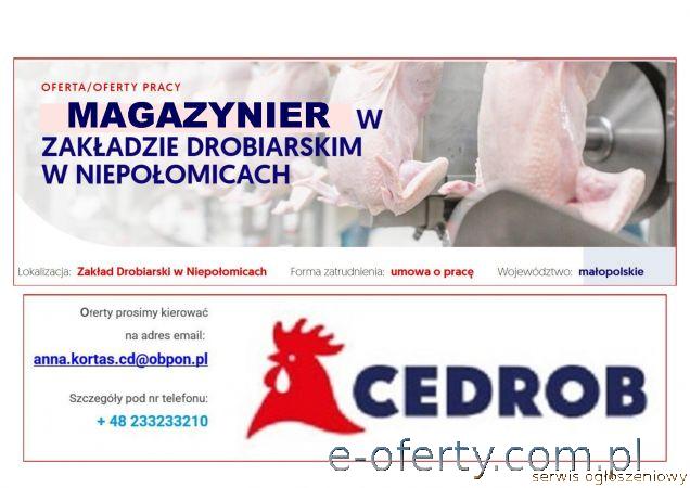 MAGAZYNIER W ZAKŁADZIE DROBIARSKIM W NIEPOŁOMICACH